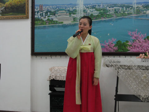朝鮮料理!?今日はお世話になる中国の会社の人に 北朝鮮料理を食べさせてもらいました 大連にいて北朝鮮料理です。 お店の人達はやっぱりあのバッジをつけていました 料理を頼むときは 北朝鮮語?韓国語?らしきもので注文していました。 食事の途中で 歌のサービスがありました。 もちろん歌は中国語でも日本語でもありません。 まったく、未知の世界です。