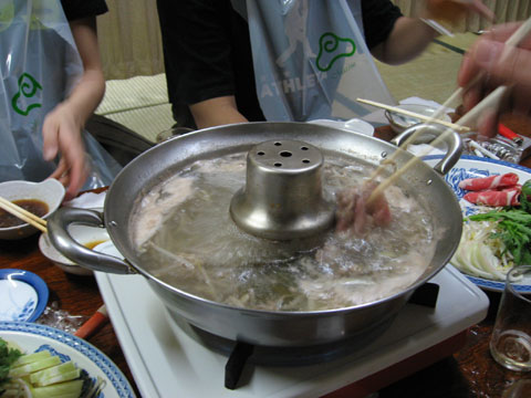 ジンギスカン今日は松尾ジンギスカンです 幸〇チームの中に4月の誕生日が2人も いたので誕生パーティーです ジンギスカン or しゃぶしゃぶ食べ放題・飲み放題です 一人3150円 自分の座った場所はしゃぶしゃぶ鍋の近く 中国で毎日、油物を食べていた自分にとっては ジンギスカンよりはしゃぶしゃぶが適しています ラッキー でも、ジンギスカンも食べたい・・・ 日本人に生まれてよかった