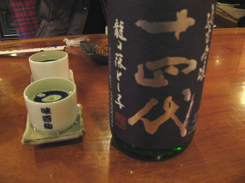 十四代なかなか北海道では飲めない日本酒があります。 それは十四代。 山形県の高木酒造のお酒です。 なぜ飲めないかって、北海道の酒屋さんで 売ってないんです 札幌駅の近くの居酒屋で 見つけちゃいました 今回飲んだのは「十四代 純米大吟 醸龍の落とし子」です。 スッキリしてフルーティな香り、 そしてす~っと喉に入っていく感じがします。 これは、飲みやすくて人気があるのもわかります。 場所は味百仙です。