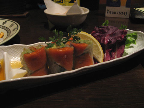 サーモンとアボカドの生春巻きです。