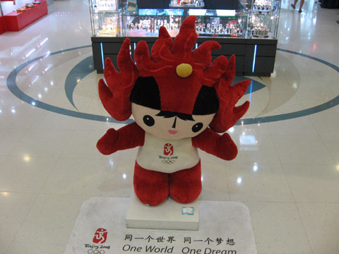来年は・・・来年は北京オリンピックですね・・・ 最近中国では色々な問題が起きていますが ホントに大丈夫でしょうか 住んでるマンション内にあるデパートに 北京オリンピック公式のお店があります 北京オリンピックのマスコットです。 この子の名前わかりますか? 「フアンフアン」と言うらしい・・・