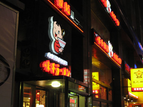 日本のラーメン今日は、「味千ラーメン」に行ってきました せっかく中国に来たのに なぜか日本の料理店に行ってしまいます メニューは日本語書いてあるし、 お店に入って「いらっしゃいませ」とか 日本語で言われると、なんか安心してしまいます。 だから中国語が上達しないんでしょうか・・・ 注文したラーメンが出てきたところで 写真を撮っていると怒られてしまいました 味は、普通のとんこつラーメンでした。 麺は細いストレート麺 ところで、「味千ラーメン」って日本で有名なんでしょうか? 札幌では見たことありませんが・・・
