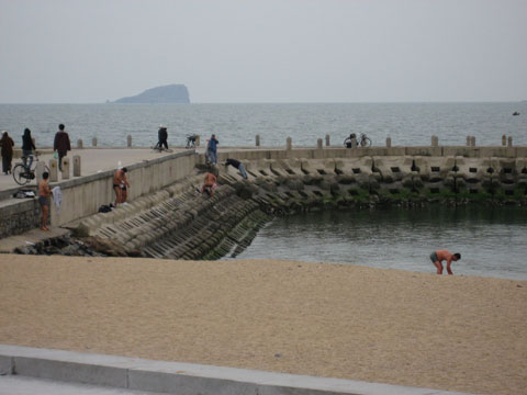 海水浴近くの海水浴場に行きました 冬の海はさびしいです そして今は11月 北海道では雪もちらついているころ・・・ なんと、ここでは冬でも泳ぐ人がいました 海にとびこんでいる人がいました 写真ではわかりずらいですが・・・