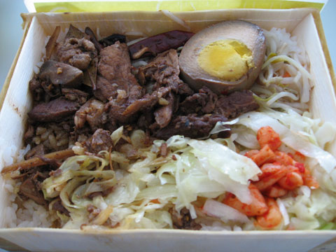 おべんとう昼食に中国のお弁当を食べたみました。 これで7元 この弁当を注文してくれた人が 食べた後に薬を持ってきて 飲んだほうがいいと・・・ 何時間かたっても お腹は痛くなりませんでした よかった・・・
