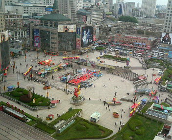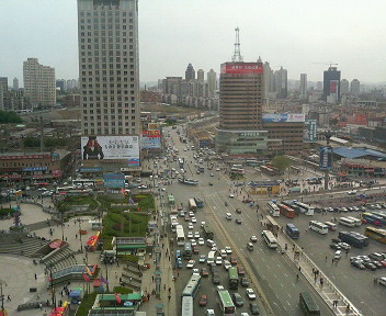 ホテルの部屋から下を見ると駅前広場が見えました。