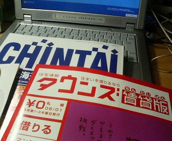 準備今日は日曜日なのに仕事でした 4月ぐらいからこんなことが多い気がします。 10:00~16:00までの予定が 予定変更になり、12:00に仕事が終わってしまいました ラッキー でも、天気も悪いし行くところないんですがね・・・ そこで、そろそろ引越しをしようかと計画しているので 賃貸情報誌をコンビニで買い集め読むことにしました。 実際の物件は友達お勧めの不動産屋に任せているので 心配ないのですが、現在の相場やどんな設備があるのかなど 予備知識をつけておこうと思いました
