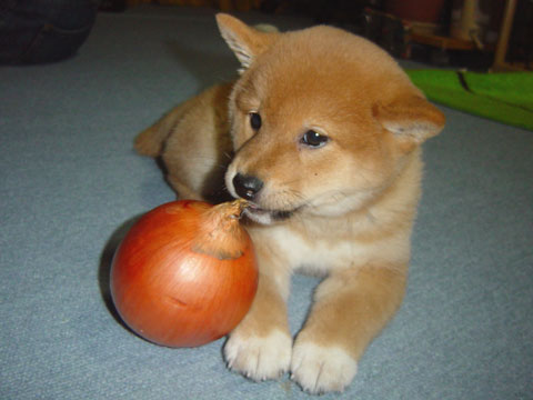 玉ねぎで遊んでいる小鉄を撮ってみました