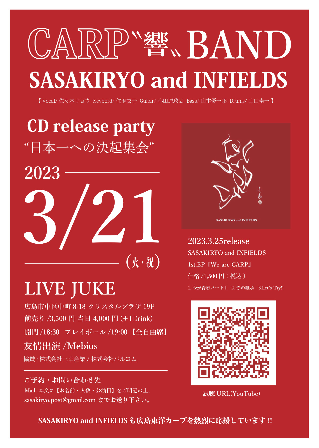 (広島市中区中町8-18クリスタルビル19F TEL 082-249-1930) Start 19:00 (Open 18:30) MC 4,500円 (学割 2,500円) 要ドリンク ☆ ネット配信あり 2,500円