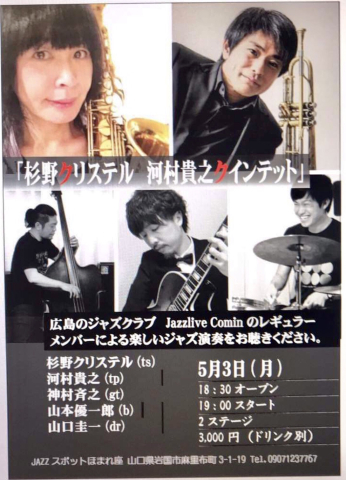 | Welcome to "Our Space" ~どうぞ ごゆっくり 寛いでくださいね~ Vol.14 Schellerひさみ(Vo)小野塚晃(p.f.)山本優一郎(Bass)吉岡洋充(Dr) Open 18:30 Start 19:00 前売3500円 当日4000円(ドリンク別) ご予約はこちら♪→Live Juke mail@live-19-juke.com