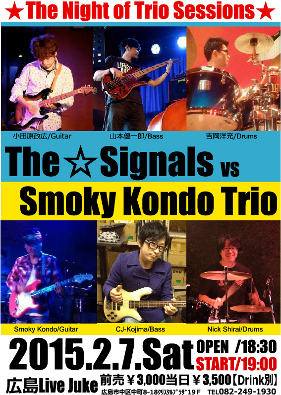 | 新春JAZZ FUSIONの乱 2015 2 mile ash @ Juke 野村彰浩(p.f.)山本優一郎(Bass)貞永聖文(Dr&SAMPLES) Open 19:30 Start 20:00 2000円(ドリンク別) |
