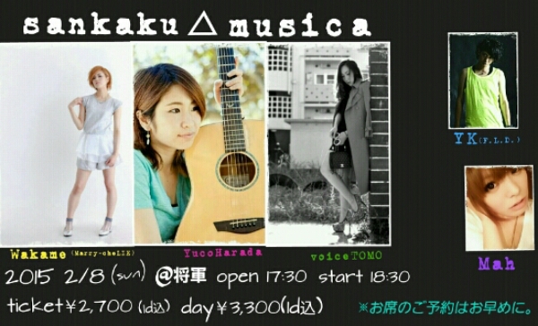 | 新春JAZZ FUSIONの乱 2015 MAQ 森川泰介Amazing Quartet 森川泰介(Dr)太田和孝(Fl)鳥岡香里(p.f.)山本優一郎(Bass) Open 19:00 Start 19:30 2000円(ドリンク別) |