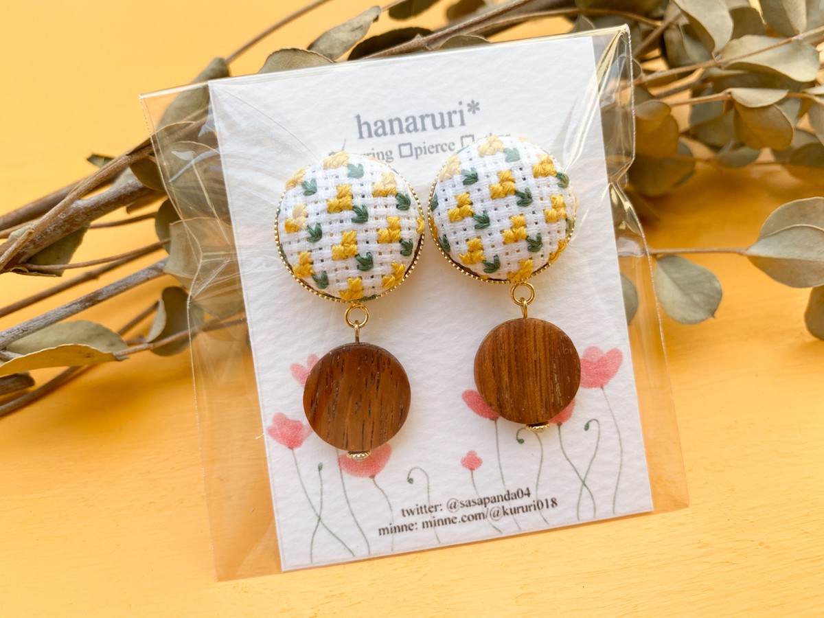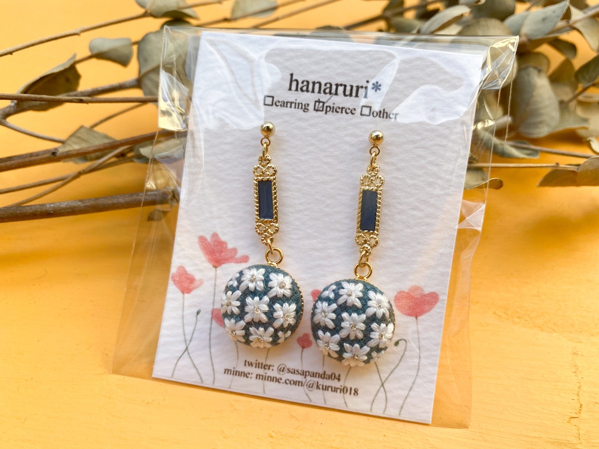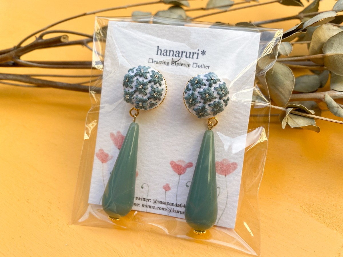 淡いブルーのクロスステッチのお花柄のイヤリング