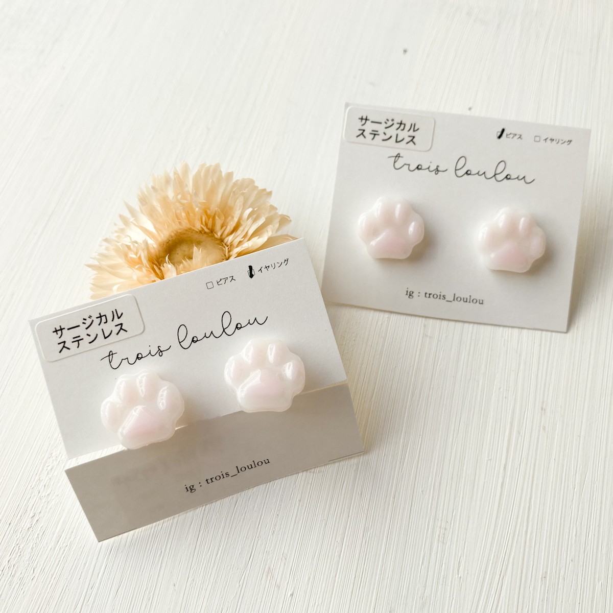 納品されたネコちゃんと肉球のピアス、イヤリング