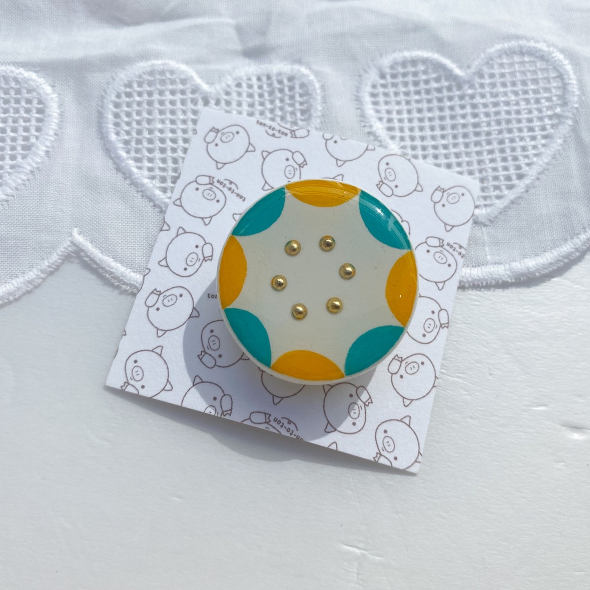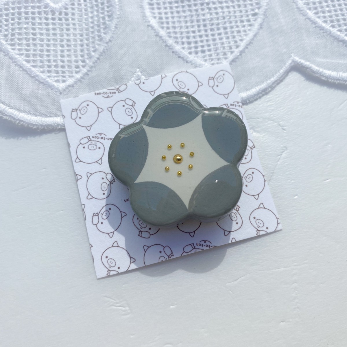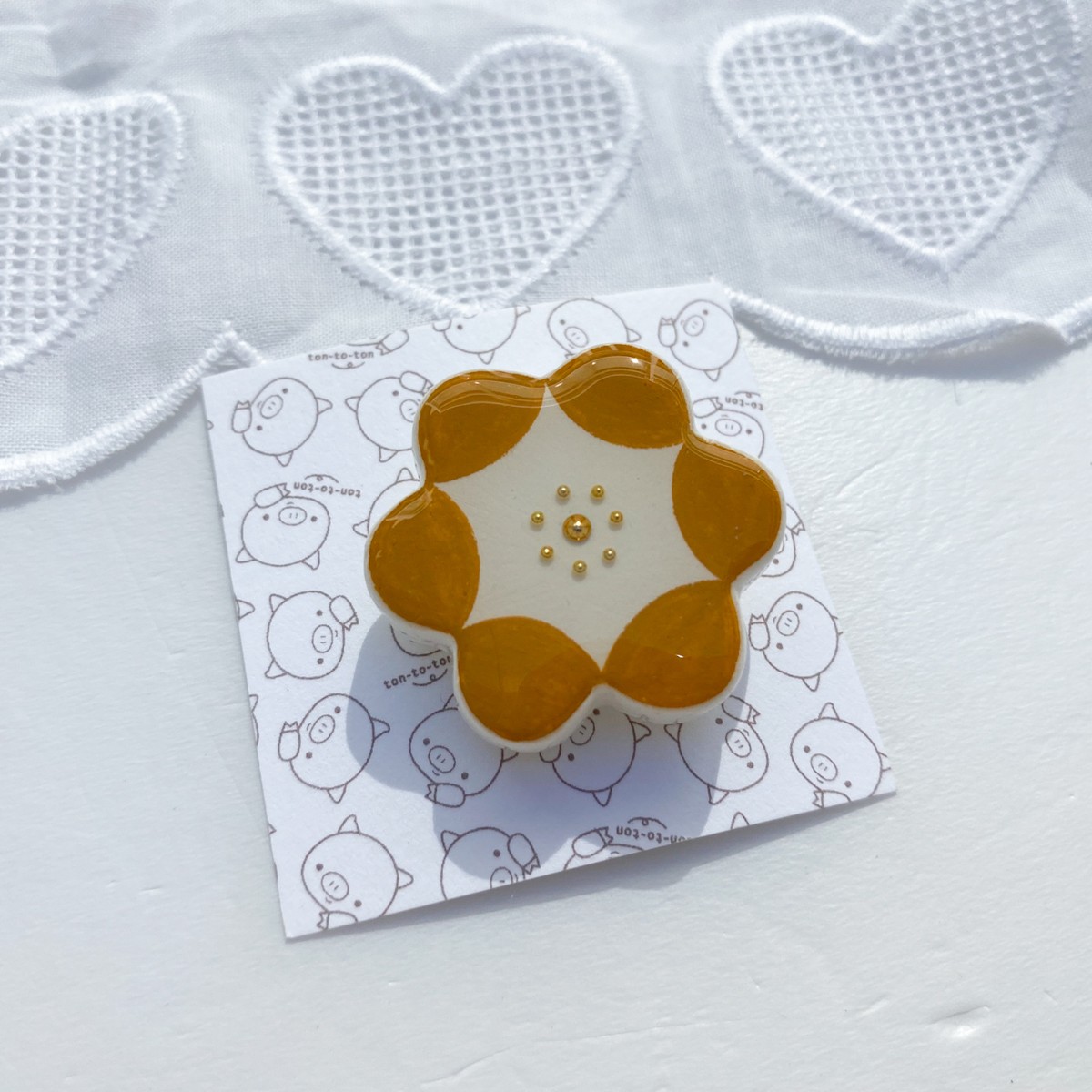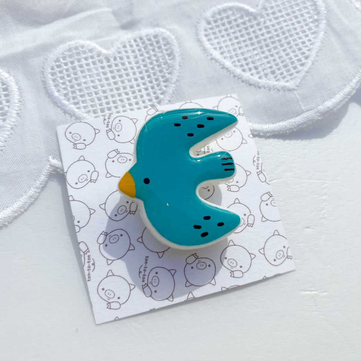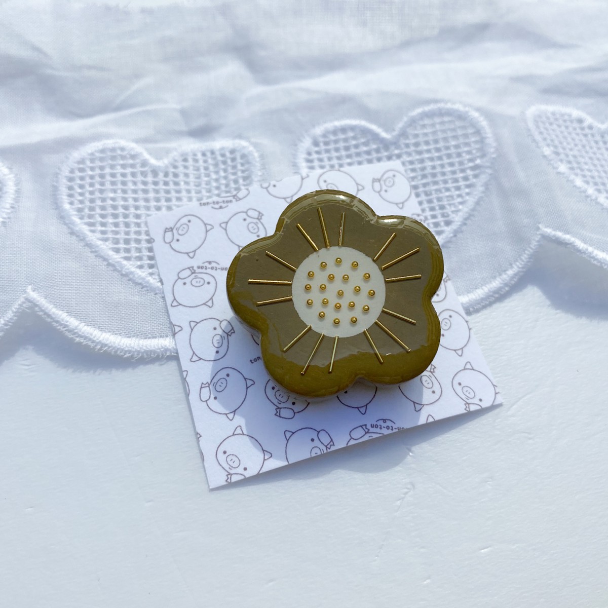 きれいなブルーのお花と黄色のビーズが揺れるブローチ