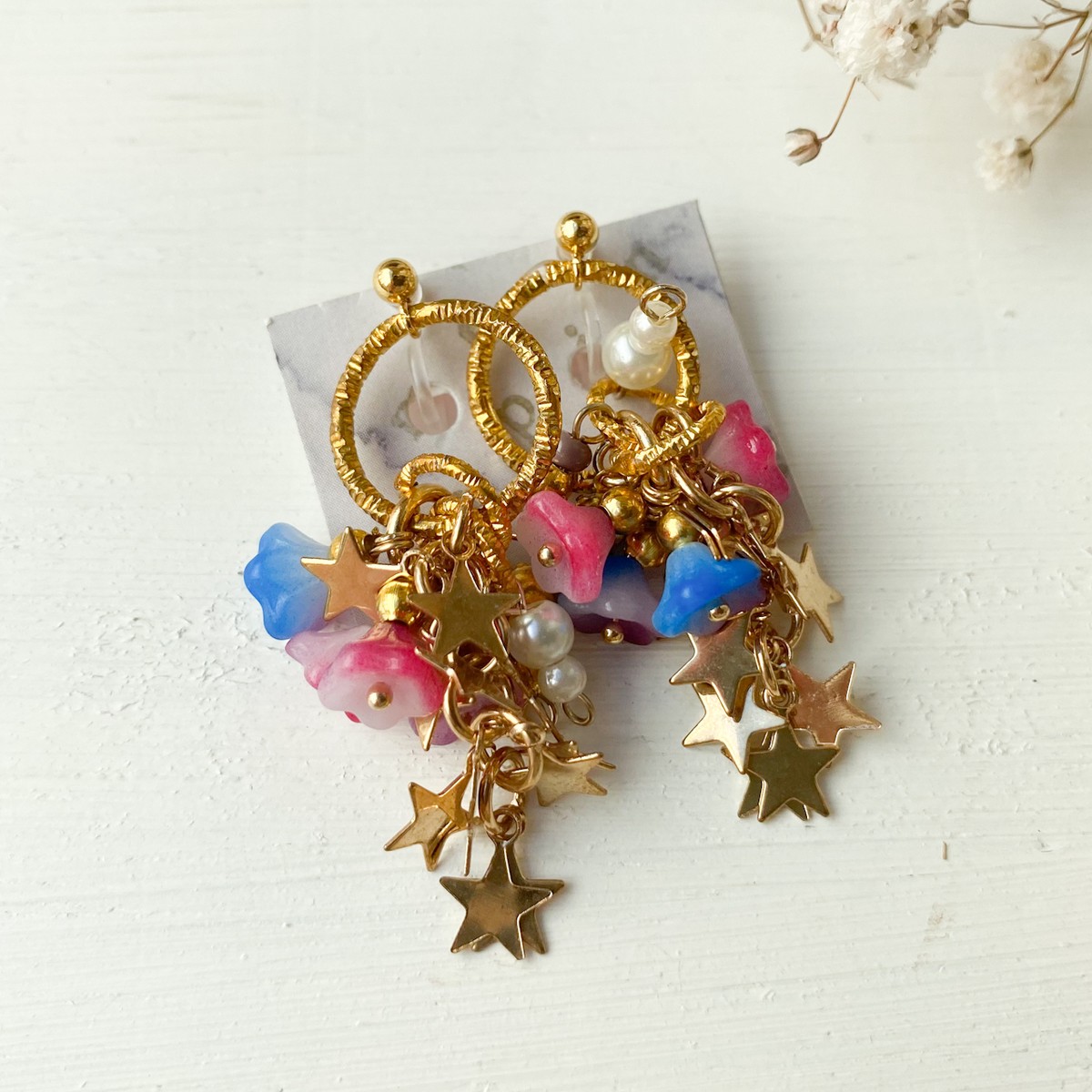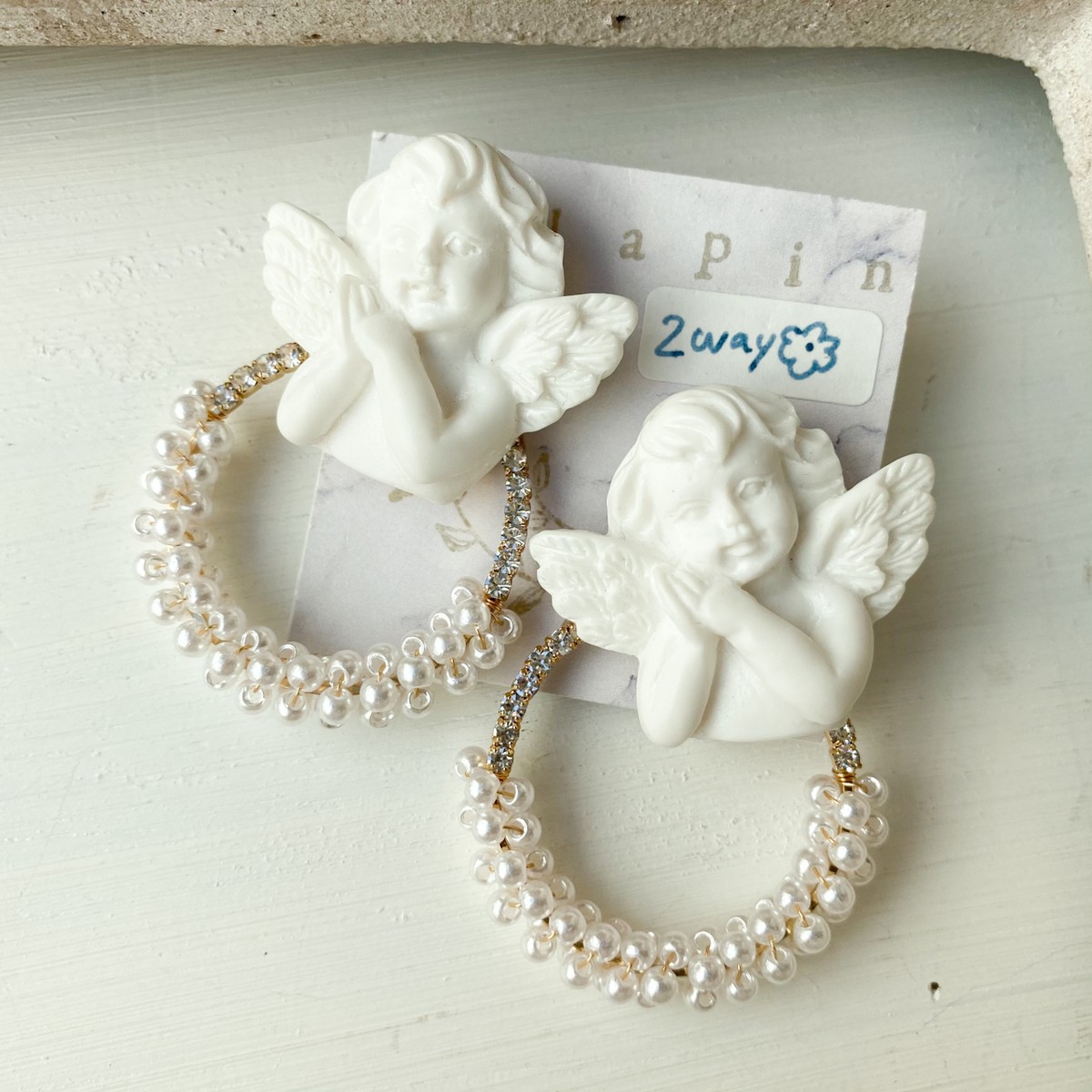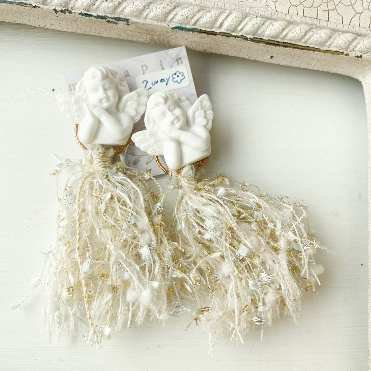 ふわふわタッセルと天使ちゃんの2wayピアス