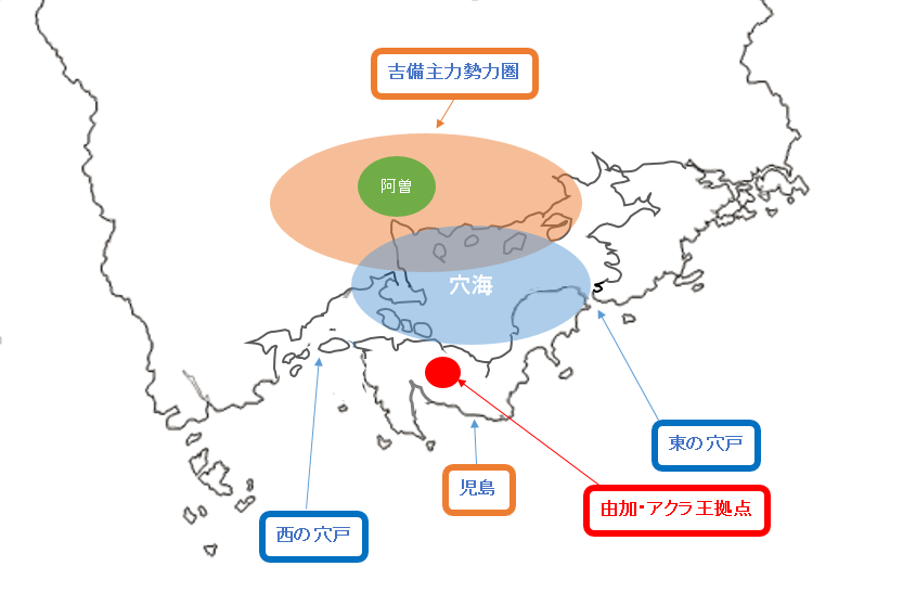 児島は本州から離れた島であり、間には穴海が広がっていた。