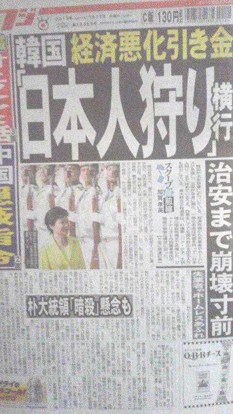 経済悪化で治安が心配される韓国で「日本人狩り」が続出-。本日1面の「加賀孝英 スクープ最前線」で