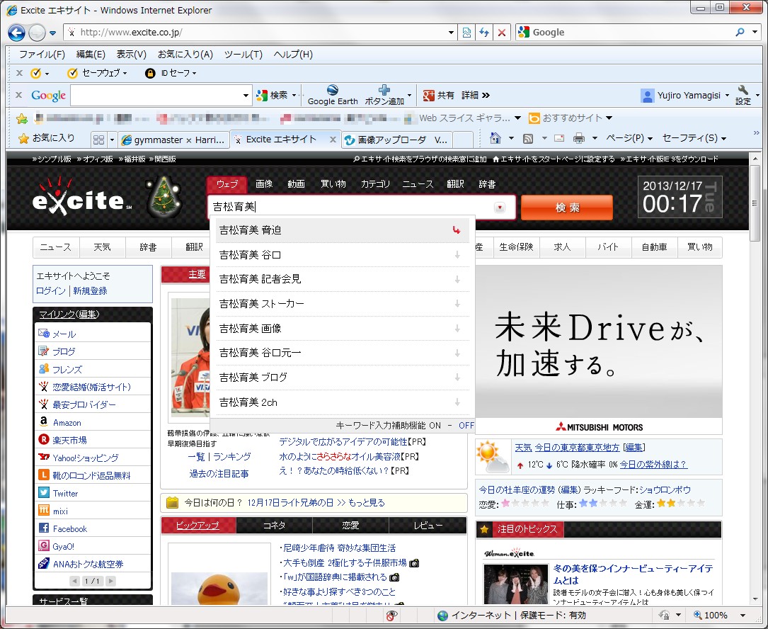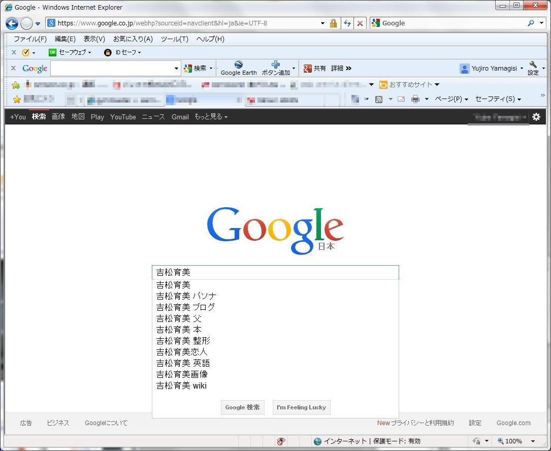 各検索エンジンの「吉松育美」入力時の予測ワード。