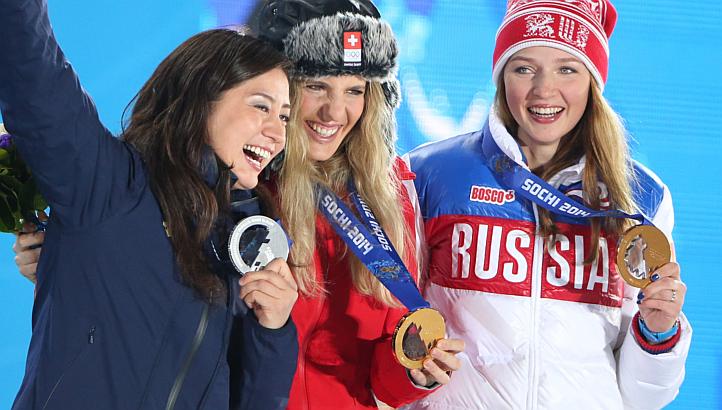 これ1位の選手と元チームメイトで仲良しらしいよ。決勝を2人で戦う競技だし3位の人はちょっと関係ないっつう感じ