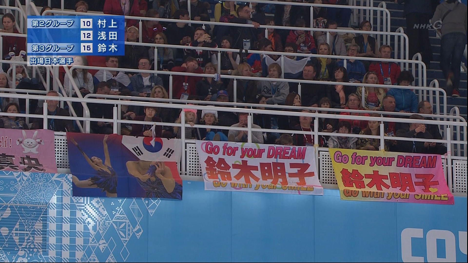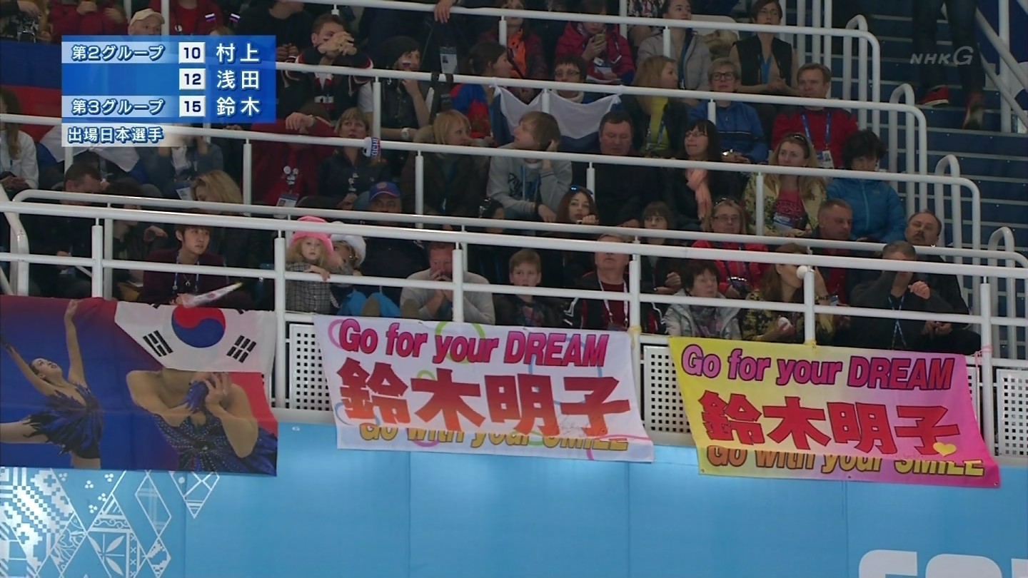 真央ちゃんの応援旗の顔に韓国国旗をかぶせるチョン