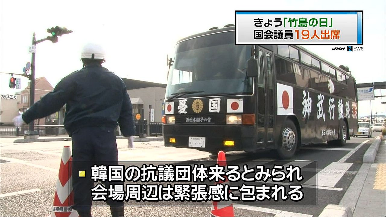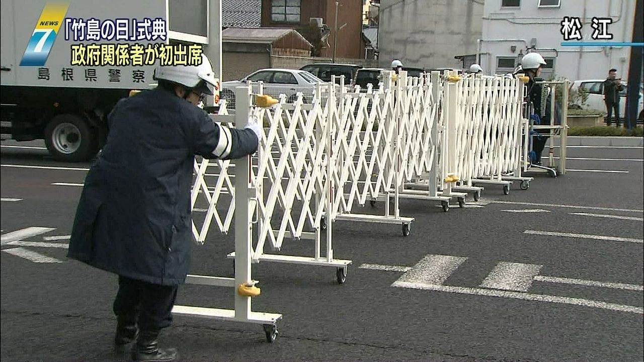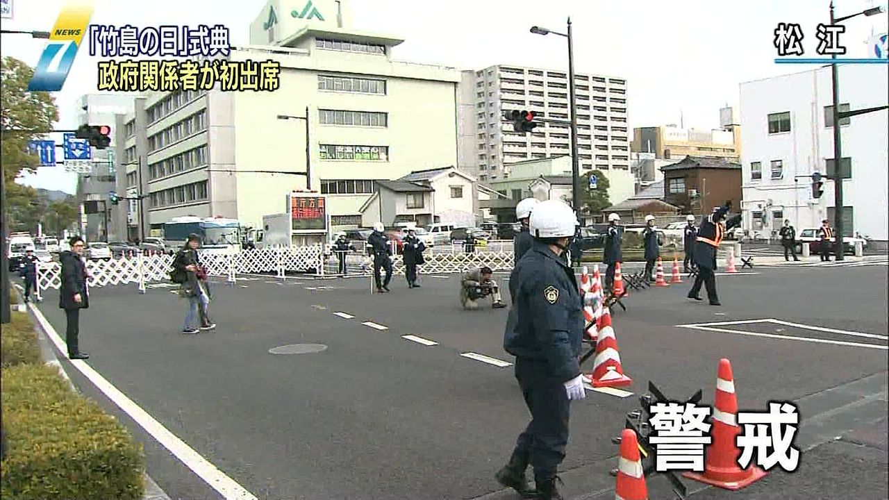 島根県は式典に安倍晋三首相をはじめ閣僚の出席を求めてきた。政府が政務官派遣にと どめ、国が前面に出るのを抑えているのは、韓国を刺激して深刻な政治問題になるのを避けたいという判断からであろう。その意図は理解できるとしても、これまでの摩擦を恐れるあまりの過剰な配慮が、結果として韓国の不法な竹島実効支配を進行させたともいえる。