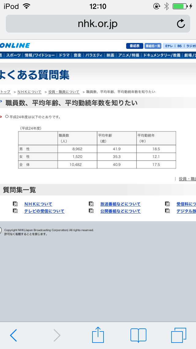 かたや、4倍近くの予算を持つNHKの人員が、1万0482名