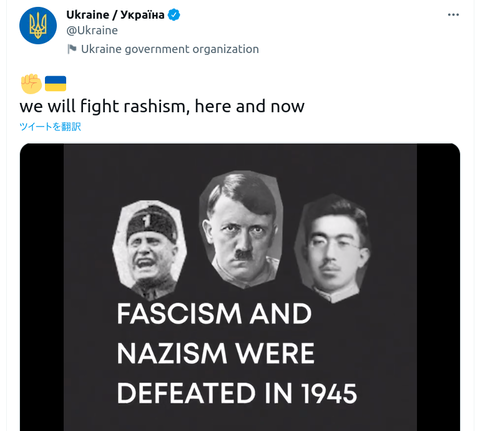 【動画】ウクライナ政府公式アカ、『昭和天皇』をヒトラー・ムッソリーニの写真と並べてツイート
