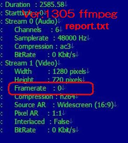 Ver 1.3.0.5 ffmpeg :Framerate : 0