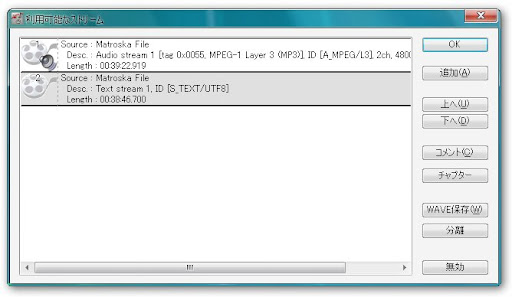 mkvファイルの場合実際のストリームの1番目に subtitle があると