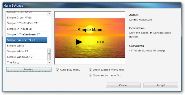 その他、ビデオタイトルの再生後の戻る先として Title Menu をリストに追加した