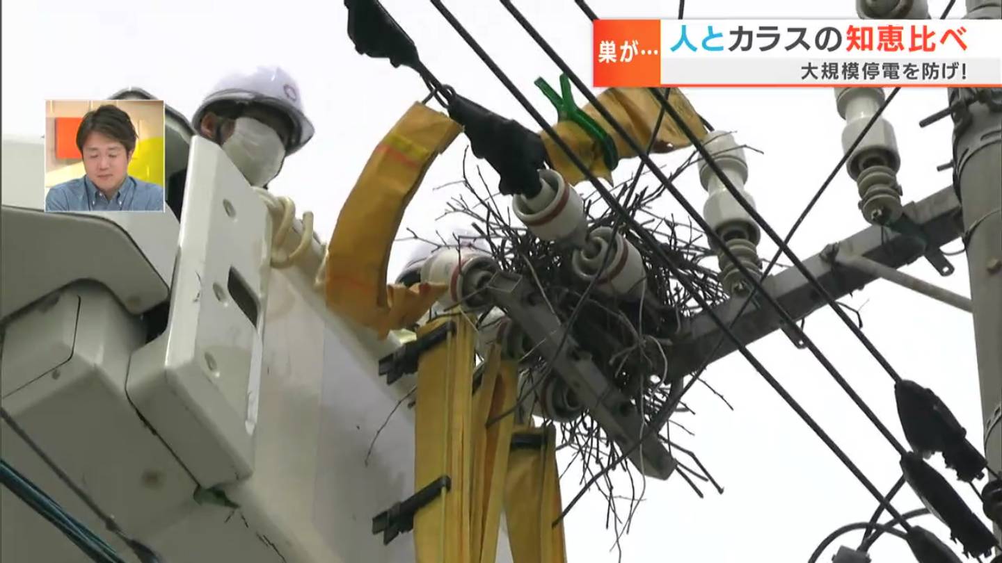 電柱の「カラスの巣づくり」が”大規模停電”につながる恐れ