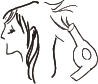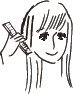 | 1. 乾いた髪の毛を PUT ON MAGIC で濡らします。 2. ドライヤーで乾かします。 3. アイロンでスタイリング。 |