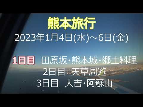 熊本旅行 2023年1月4日(水)~6日(金)3日間でできるだけ回ってみました。 1日目 田原坂・熊本城・郷土料理 2日目 天草周遊 3日目 人吉・阿蘇山 今回は飛行機とレンタカーを使用しました。 2か月以上前の予約で 往復の飛行機代とホテル2泊で一人38190円(旅行保険込) レンタカーは3日間で13900円 その他の経費として 食費、入場料、ガソリン代、駐車場代、通行料金などです。 1日目の編集がようやく終わりました。 【熊本旅行】1日目2023年1月4日(水)西南戦争激戦の地 田原坂熊本ラーメン熊本城YouTuberスーツさんの動画で見た石松茶屋で夕食BGM:Moonrise - Reed MathisDesertsyoutu.be