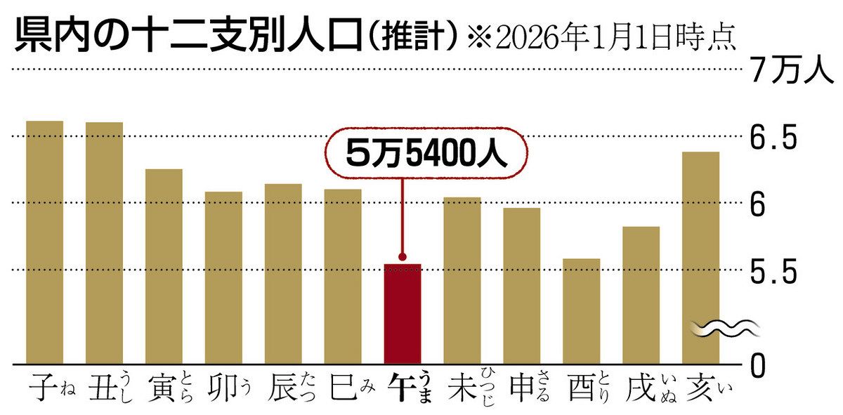 午年生まれ、十二支別で最少の5万5400人 県推計、丙午で産み控えが影響か:中日新聞Web県の推計で、2026年の干支(えと)「午(うま)年」生まれの県民は5万5400人。十二支別で最も少ない。今年60歳となる人たちが生まれ...www.chunichi.co.jp