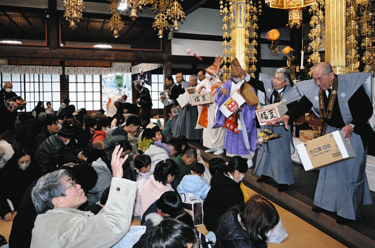豆や菓子まき邪気はらう 津・千手院賢明寺で節分会式 三重 【津】三重県津市久居元町の千手院賢明寺で3日、節分会式厄除祈禱(きとう)会と豆まきがあり、地元の園児や厄年の男女が福豆や福菓子をまいた。 立春の前日に邪気をはらう行事。世話方でつくる千手観音奉賛会 ... www.47news.jp