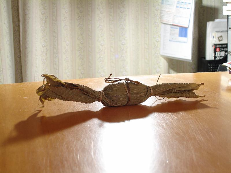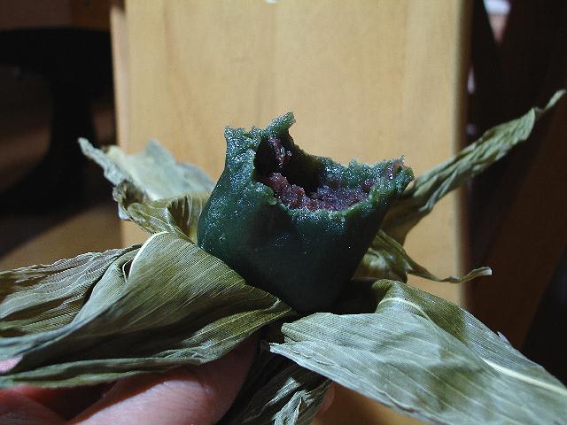 *この笹団子食った!(*^0^) =3 ゲップ こんな感じ・・・蛍光灯の下だと青っぽい。