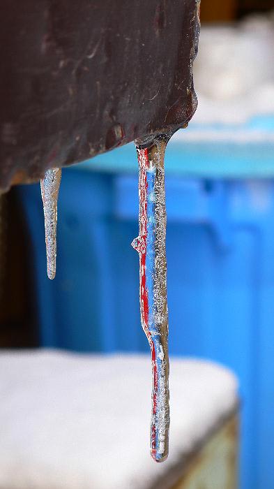 もう一枚のつららです・・・奇麗だったので写しましたが、向こうの青色の物体はゴミ箱(ポリバケツ)です。((((^Q^)/゛ギャハハハ
