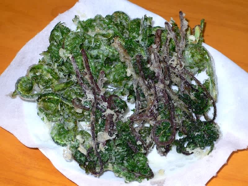 昼に釣り仲間から頂いた山菜を、天ぷらにして一緒に頂きました。