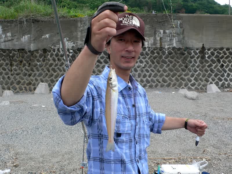 各自大型狙いで、大バリデカエサ置き竿で狙う人、ジャリメ一匹掛けチョン投げで誘う人、派手な蛍光ビーズでアピールする人、釣れたひとの前に斜めにキャスティングする人など、それぞれの戦略で昼過ぎまで頑張りました。