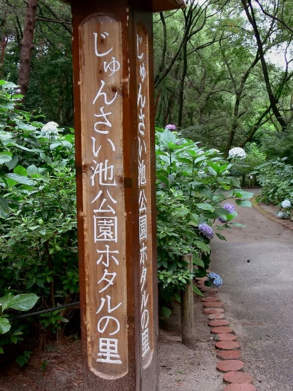 雨の中、公園の案内板で蛍の見られる場所を確認し歩いてみました。