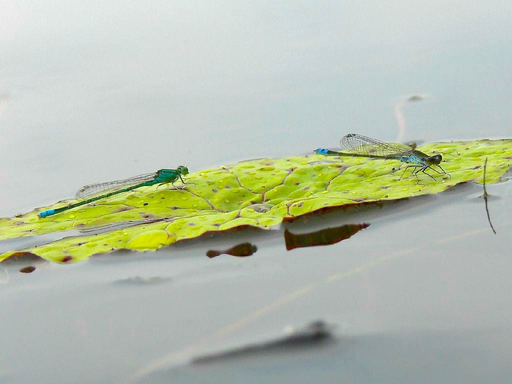 ↓もう一枚の気に入ってた写真は昨日も載せましたが、「色違いのイトトンボ」です。・・・しかし、カメラが傾いてて勿体無い事しました。・・・ギッタンバッコン(シーソー)みたい!((((^Q^)/゛ギャハハハ