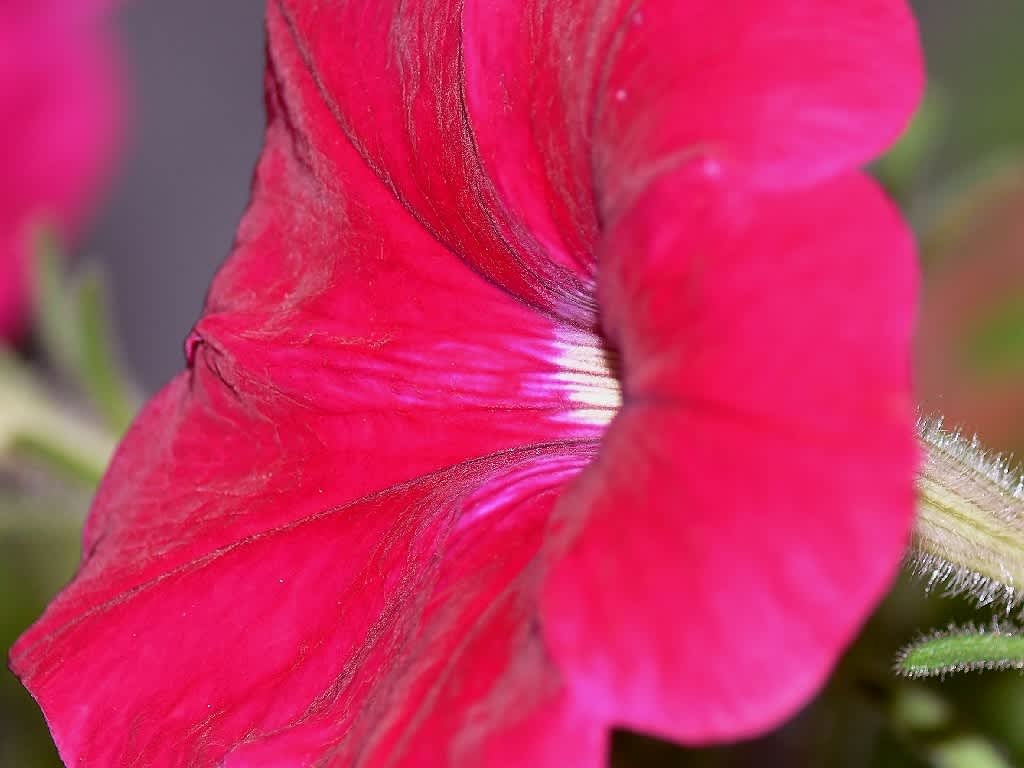 ↓枝豆の隣りは元気一杯のペチュニア・・・たくさん咲いてて奇麗なんですが、このレンズでは一輪しか写せません。f(^^;) ポリポリ
