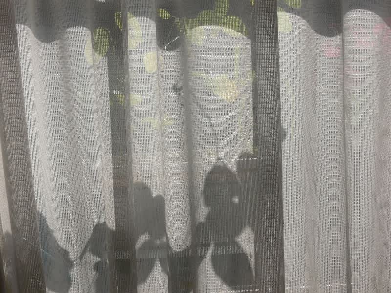 部屋から枝豆のプランターをカーテン越しに写しました。