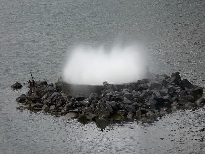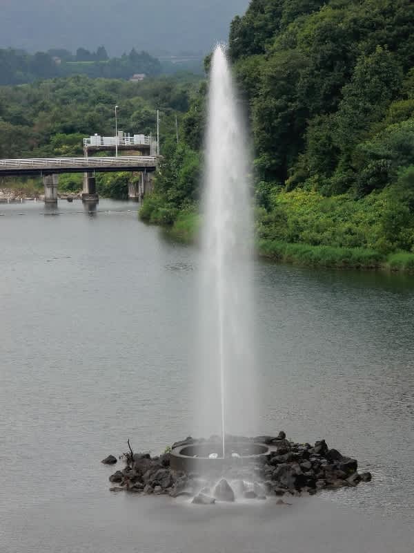 ・・・胎内川の真ん中から噴水が~~\(゜ロ\)(/ロ゜)/