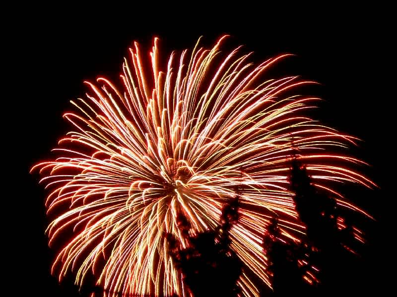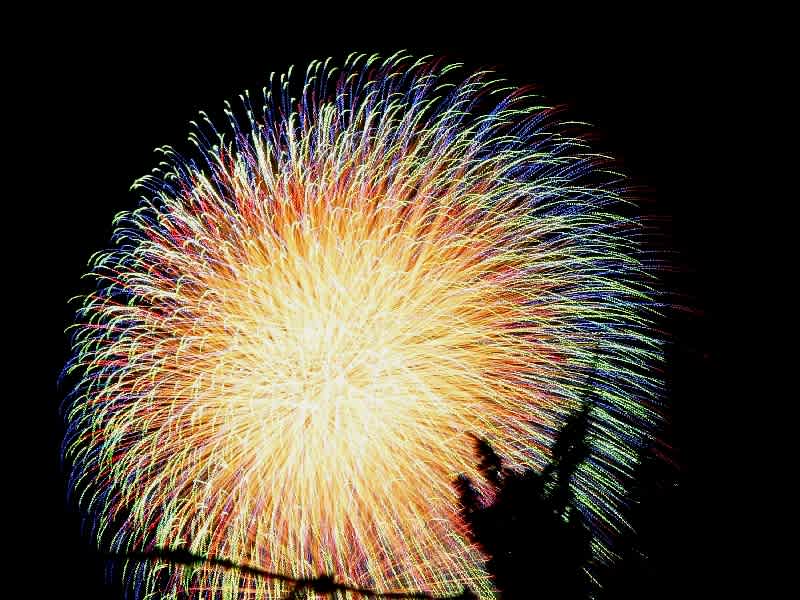 低い花火は全く見えず、高く揚がった花火だけ狙いました。・・・木が邪魔してます。。゜(T^T)゜。