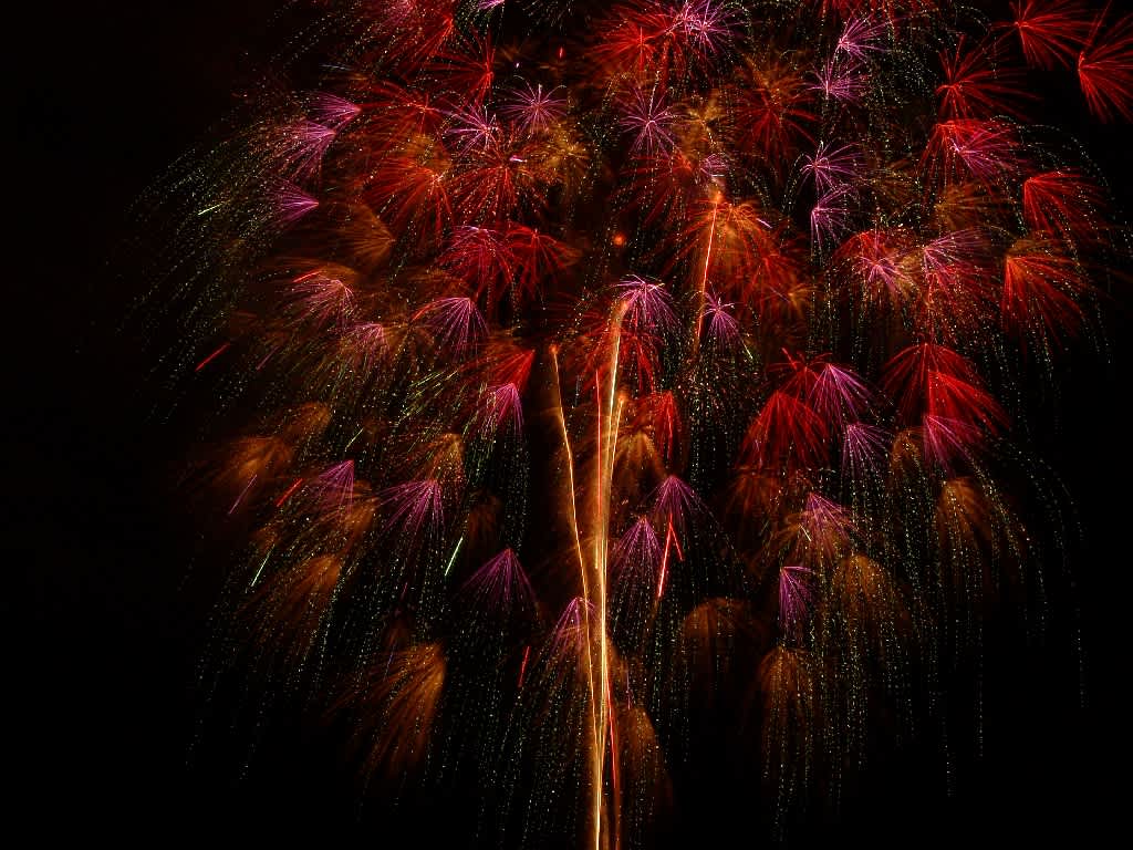 三尺玉、四尺玉は失敗でした、その他可愛い花火が写っていたのでドバドバ載せました。・・・記念ってことで許してちょんまげ。f(^^;) ポリポリ