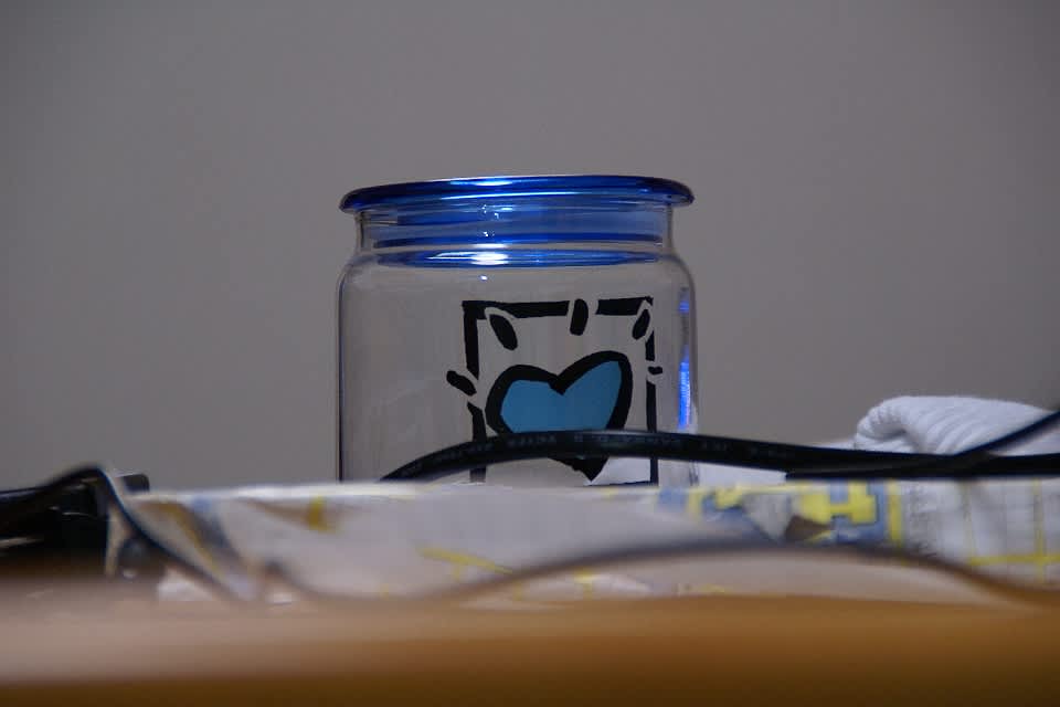 夜中、部屋に置いてあるグラスポットをフラッシュOFFでそのまま写してみました。