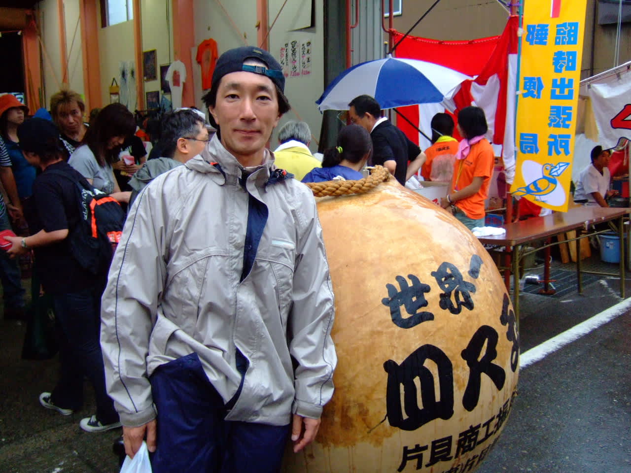 ・・・サーフさんのカッパズボンが・・・(世界一四尺玉の現物)↓花火発射!