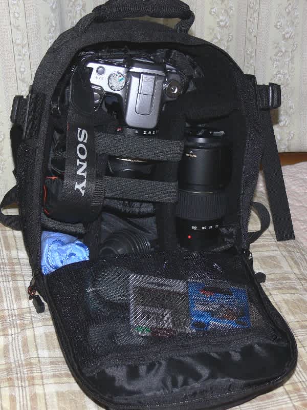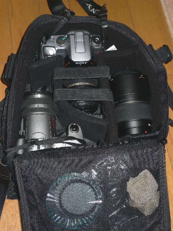 ↓デジタル一眼と交換レンズもバッチリ収納!( ^ー゜)b