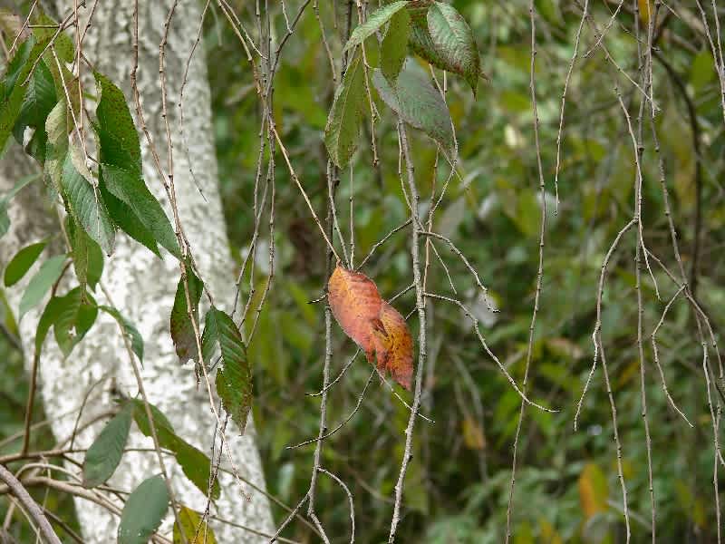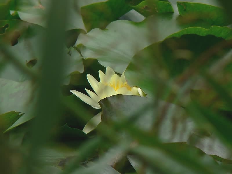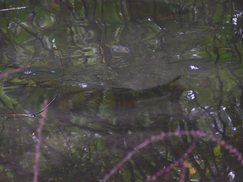 秋の気配(FZ-30片手に速攻じゅんさい池)<枯れ葉1枚・・・秋を感じました。>*仕事の合間の数分焦りながら撮影↓春には美しい花を咲かせてた由緒有る枝垂桜も秋模様・・・取り残された感じ!?↓池はスイレンの葉・・・赤松が鏡のように映ってた。↓池の中ほどでスイレンの花発見!・・・かなり遠い!!!・・・テレコンバージョン使用!1000mmオーバーで手持ち撮影!f(^^;) ポリポリ↓白い鯉 発見!↓黒い鯉 発見!↓じゅんさい池の好きな狭い一画です。・・・小さな赤い枝*曇りでも明るいレンズだから写しやすかったです。気に入ってた写真はピンボケでボツでした。└(T_T;)┘・・・サーフさんゴメン!